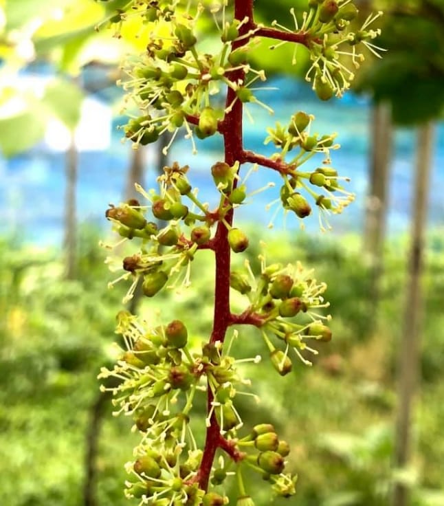細野の農場は、広くはありませんが、山上から清らかな湧水が流れ込み、岩石の地層で水はけが良く、谷地ならではの山谷風により、昼間は南側に流れる千種川から暖かい空気が昇り、夜間は山頂から降りる冷たい空気がもたらす寒暖差。ぶどう栽培にはうってつけの場所です。