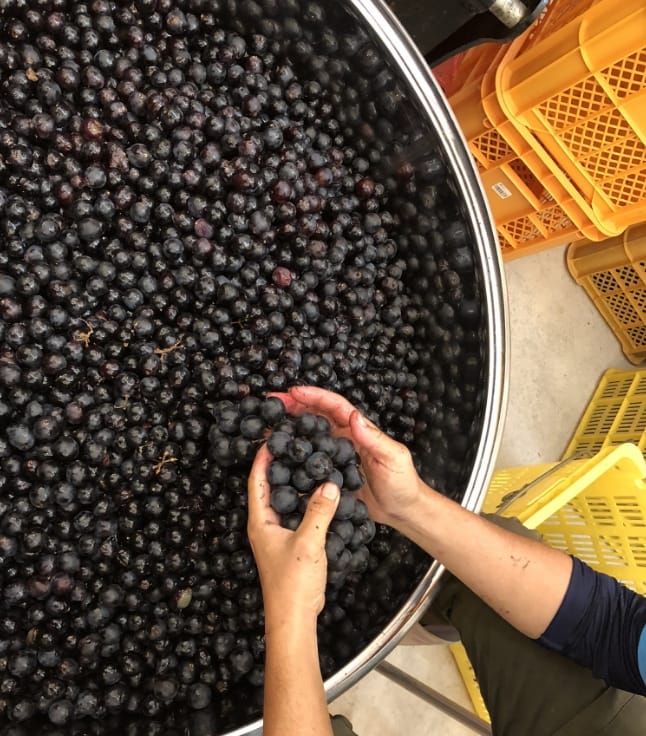 このぶどうを中心にワインを醸造することを決意しました。名目上は委託醸造ですが、愛媛県大三島のワイナリーに自ら出向き、延べ1か月間、車中泊をしながらワインの仕込みを行います。